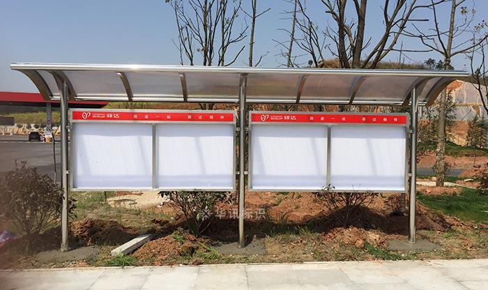 现如今,标识标牌影响着人们的方方面面,从购物到出行,标识标牌都必不可少,下面以无锡华讯标识标牌有限公司制作安装的望江驿达服务站为例,为大家讲解一下服务站宣传栏、立牌、发光字的作用。