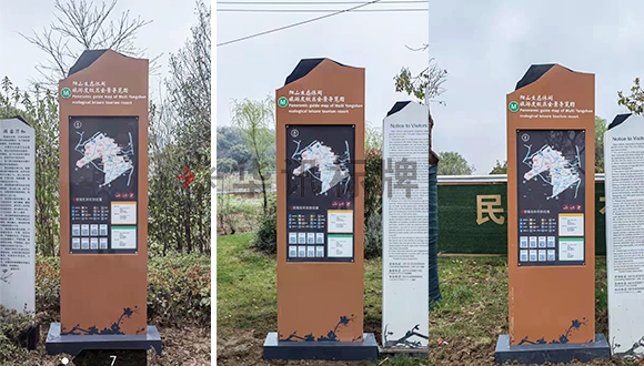 华讯标牌为无锡市阳山生态制作安装了一批标示牌,江苏省无锡阳山生态休闲旅游度假区座落于无锡市惠山区阳山镇,是全国知名的"水蜜桃之乡"、全国特色小镇。一起来看看华讯安装师傅现场拍回的图片吧。 华讯标牌主要以设计制作安装导视标识标牌为主。可制作:导视立牌、发光字、精神堡垒、风向标、党建标识牌、宣传栏、道旗等。有需要的合作伙伴可以联系我们哦~~联系方式请看文章最下方。