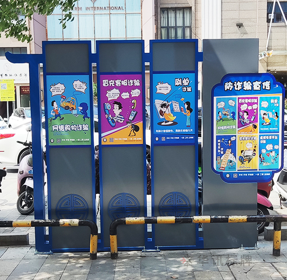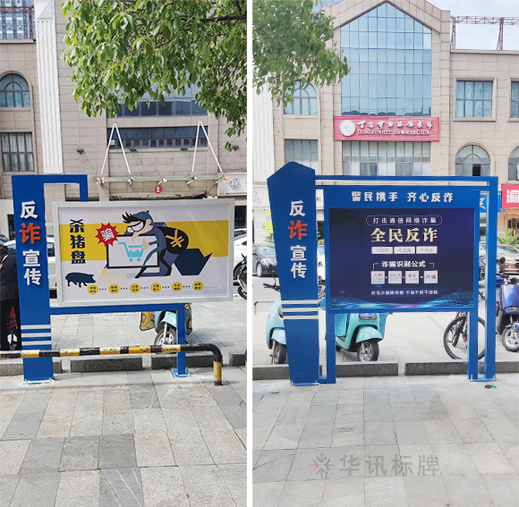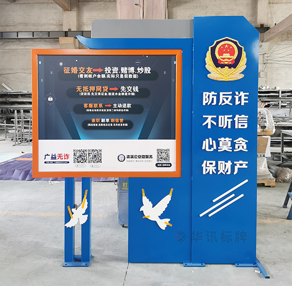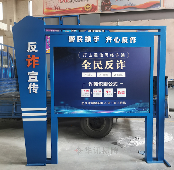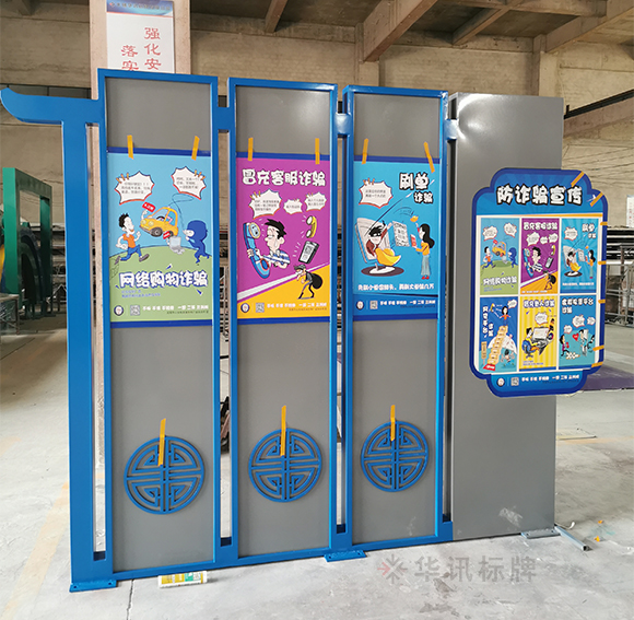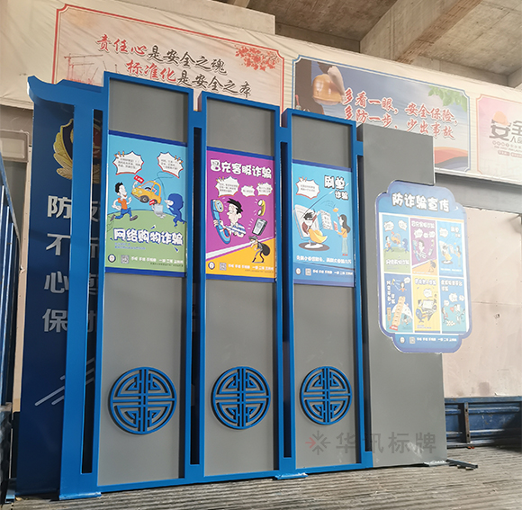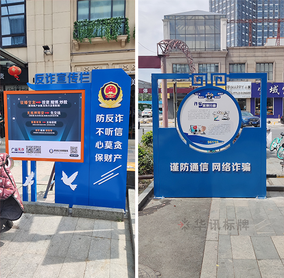 华讯标牌为政府制作安装了一批反诈宣传栏,近年来不法分子利用日益发展的通信技术和快捷支付技术在非接触状况下设计花样繁多的骗局实施电信网络诈骗,我们要时刻绷紧防范之弦,谨防新型电信诈骗。陌生来电多防范,资金转移留心眼。拒接陌生来电,避免上当受骗,电信欠费要核实,大额汇款要当心。全民参与防范,骗子有孔难入。还没有下载反诈中心APP的记得下载哟~一起来看看华讯师傅现场拍下来的图片吧~