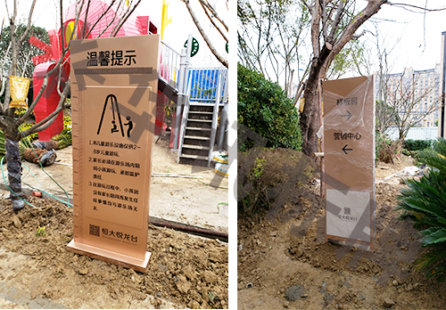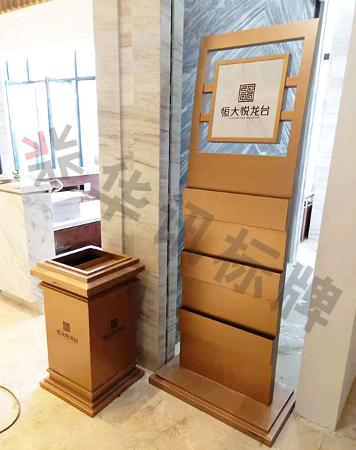 宜兴恒大悦龙台我们也是陆陆续续的为其安装了精神堡垒和部分立牌,这次我们是我们所有的导视的一个集合赏析。这批导视包含了精神堡垒导视立牌果皮箱花草牌雨伞架保安亭路堆提示牌户型牌证件公示牌道旗等。我们来看下吧。