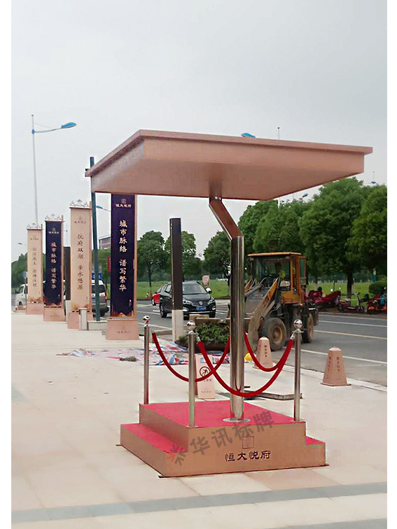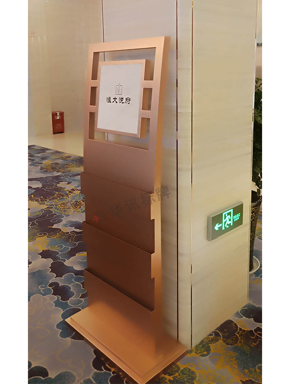 华讯标牌再次服务了我们年度的合作伙伴恒大----<江阴恒大悦府>,这次我们给江阴恒大悦府设计的颜色主体是玫瑰金。制作的内容涵盖了:水牌温馨提示牌指引牌户外垃圾桶门牌万向牌总平图道旗保安亭路堆等。当然,这只是我们交付的第一批,后续还会有更多的标识标牌。看看我们的现场图片吧。