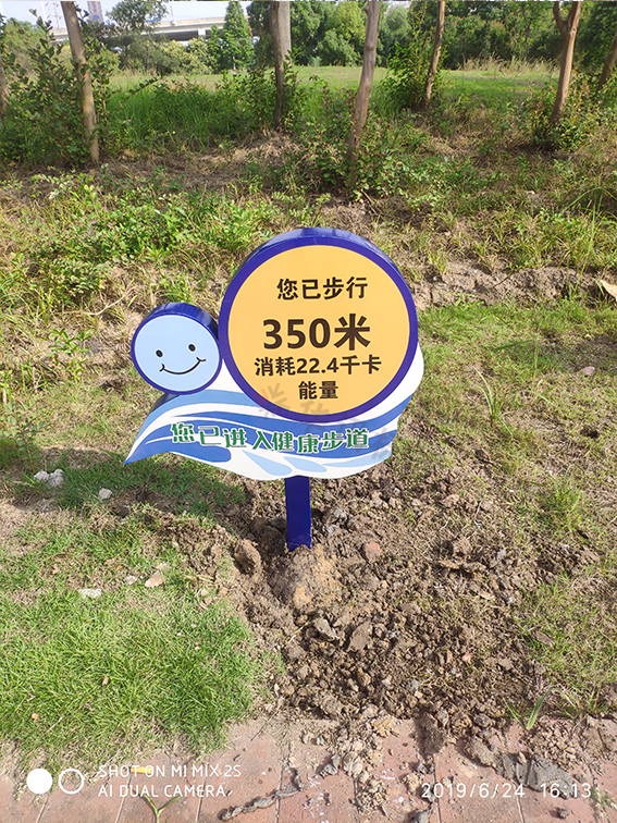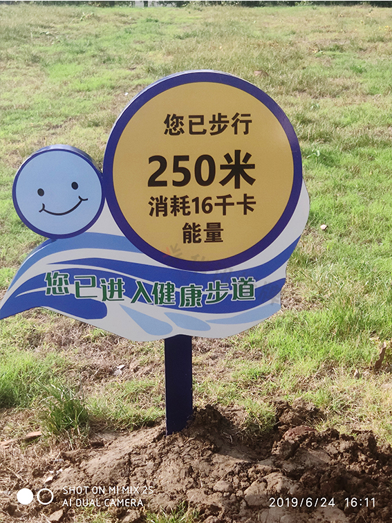 在人们日益提高对身体健康重视的环境下。东北塘金湖公园也实行了健康步道这一项利民福利。与之合作的就是我们无锡华讯标牌有限公司。