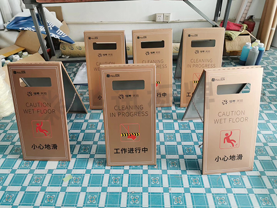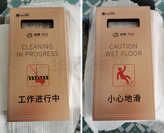 无锡华讯标牌这次为嘉兴福晟.天地地产制作了A字牌、温馨提示牌等。