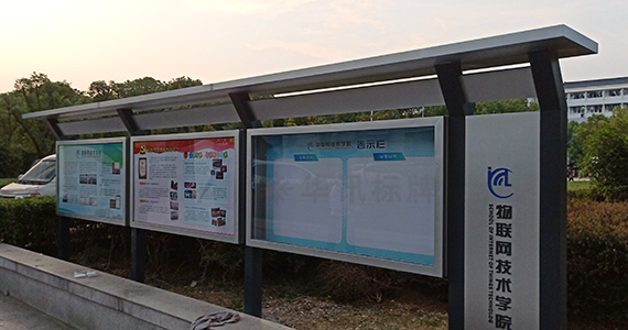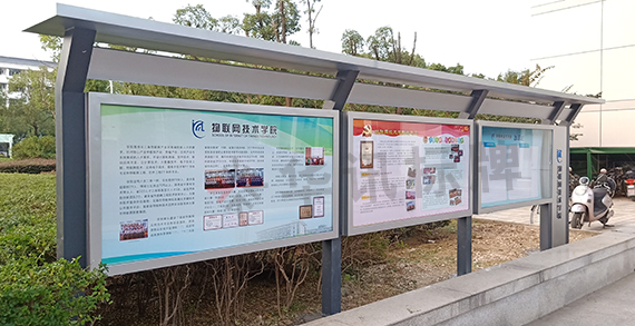 学校标识牌不仅是校园建筑环境的补充,还是校园文化建设的重要组成部分。标识牌不同色彩能带给人们不同的视觉感受,学校标识色彩的选择,一方面要根据不同年龄阶段的学生审美习惯选择,另一方面也要依据学校建筑主体体现出的色调,华讯标牌这次为无锡物联网技术学院制作安装了宣传栏、立牌等,来看看师傅现场发回的照片吧~~