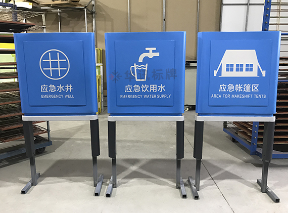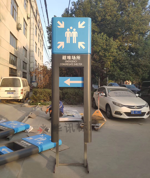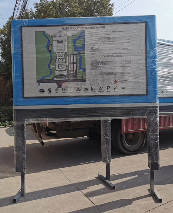 城市应急避难场所是为了人们能在灾害发生后一段时期内,躲避由灾害带来的直接或间接伤害,并能保障基本生活而事先划分的带有一定功能设施的场地。这次华讯标牌为无锡泰伯广场和吴文化广场做了一批城市应急避难导视系统。